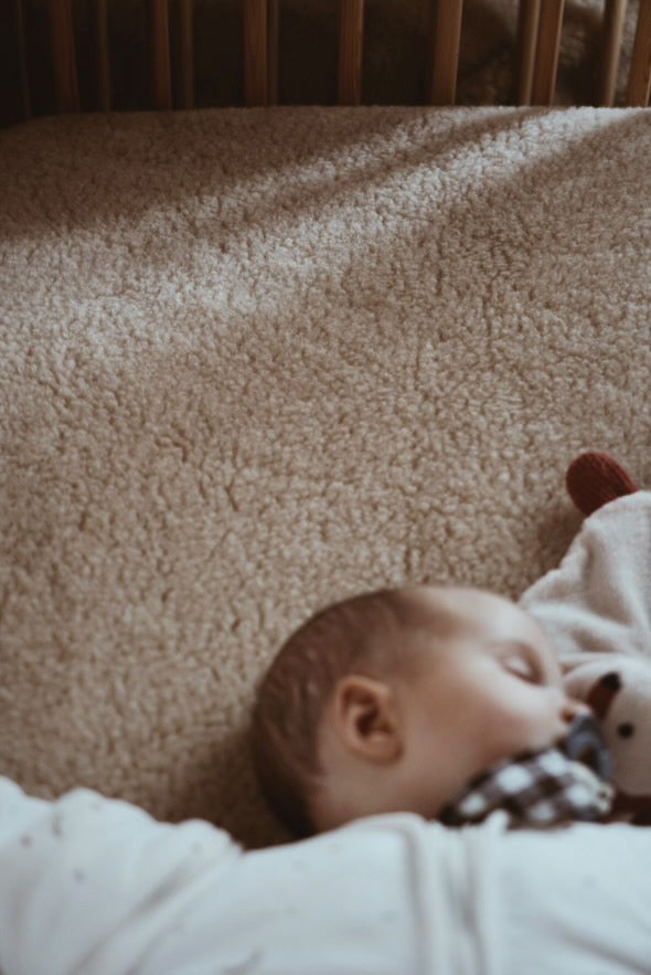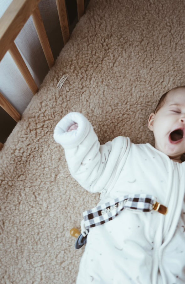 Het geheim achter onze merinowol? Het reguleert de temperatuur als geen enkel ander materiaal. Je baby blijft warm en knus tijdens koude nachten, maar ook fris en comfortabel wanneer de zon hoog aan de hemel staat. Zo slaapt je kleintje altijd op de perfecte temperatuur, zonder dat jij je zorgen hoeft te maken.