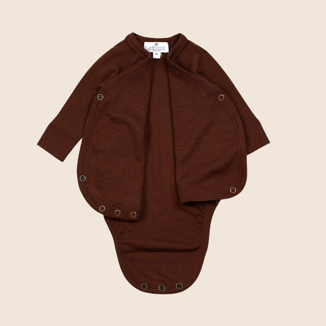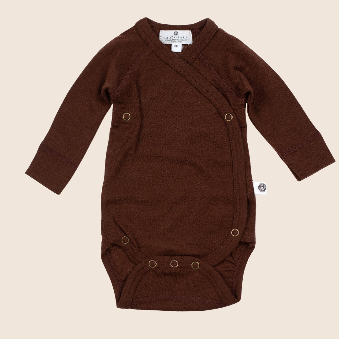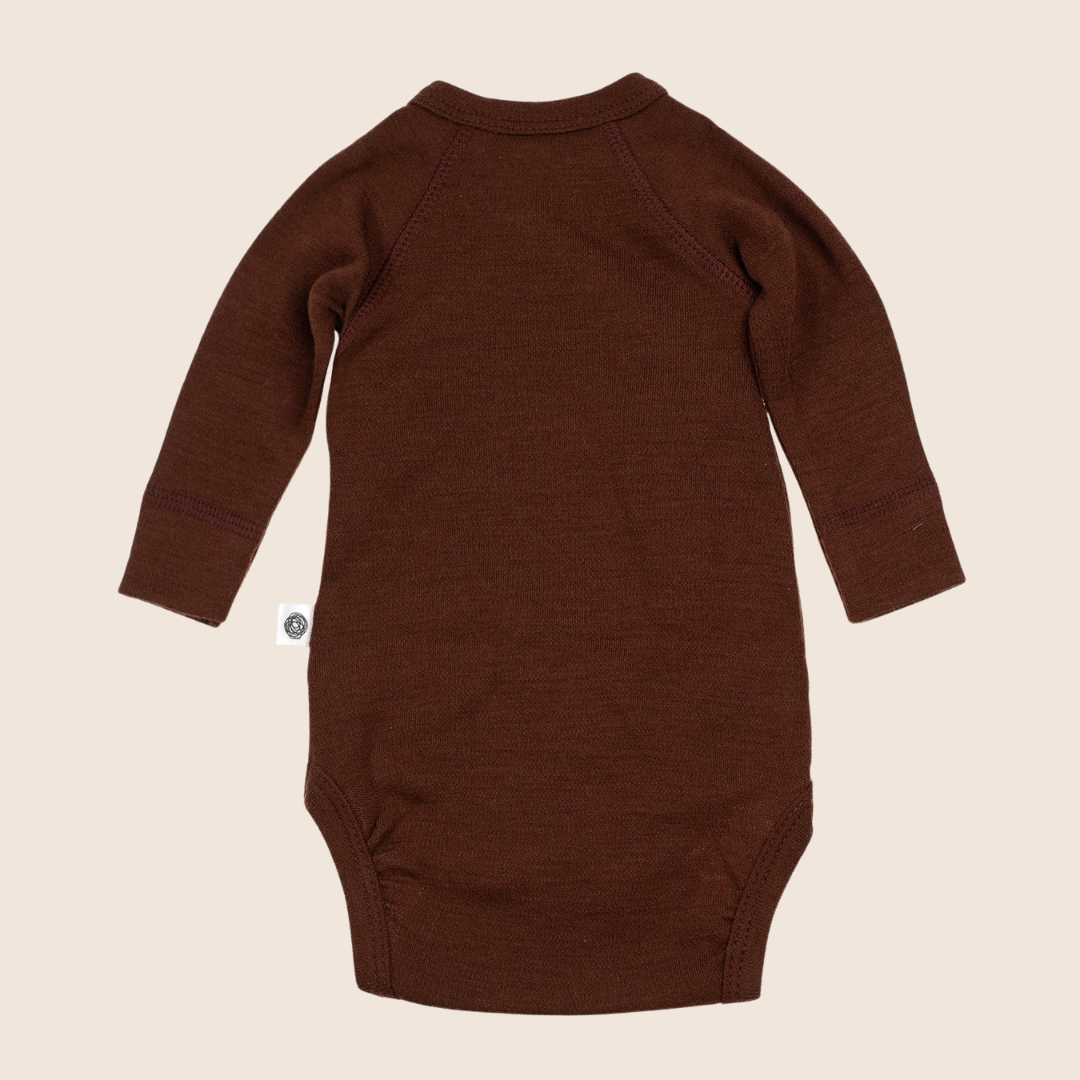 Merinowollen Overslagromper lange mouw – Chocolate Fondant