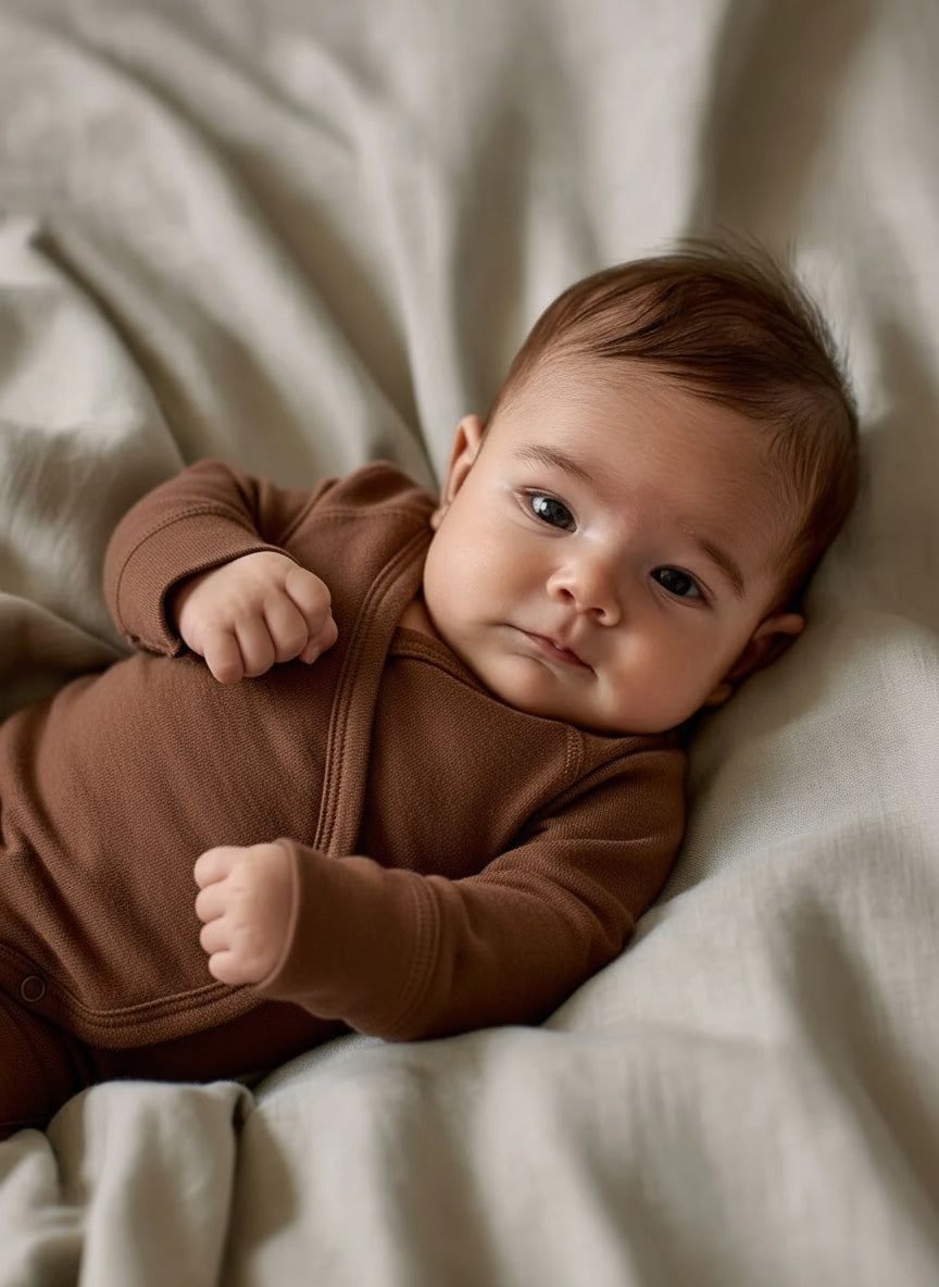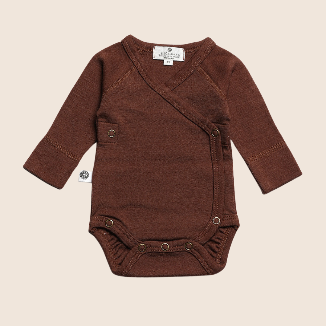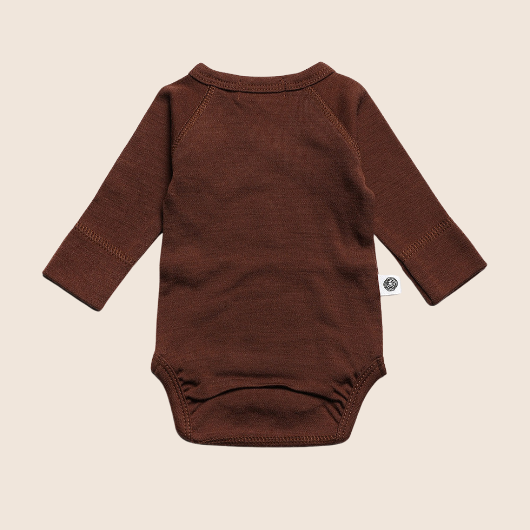 Merinowollen Overslagromper lange mouw – Cinnamon