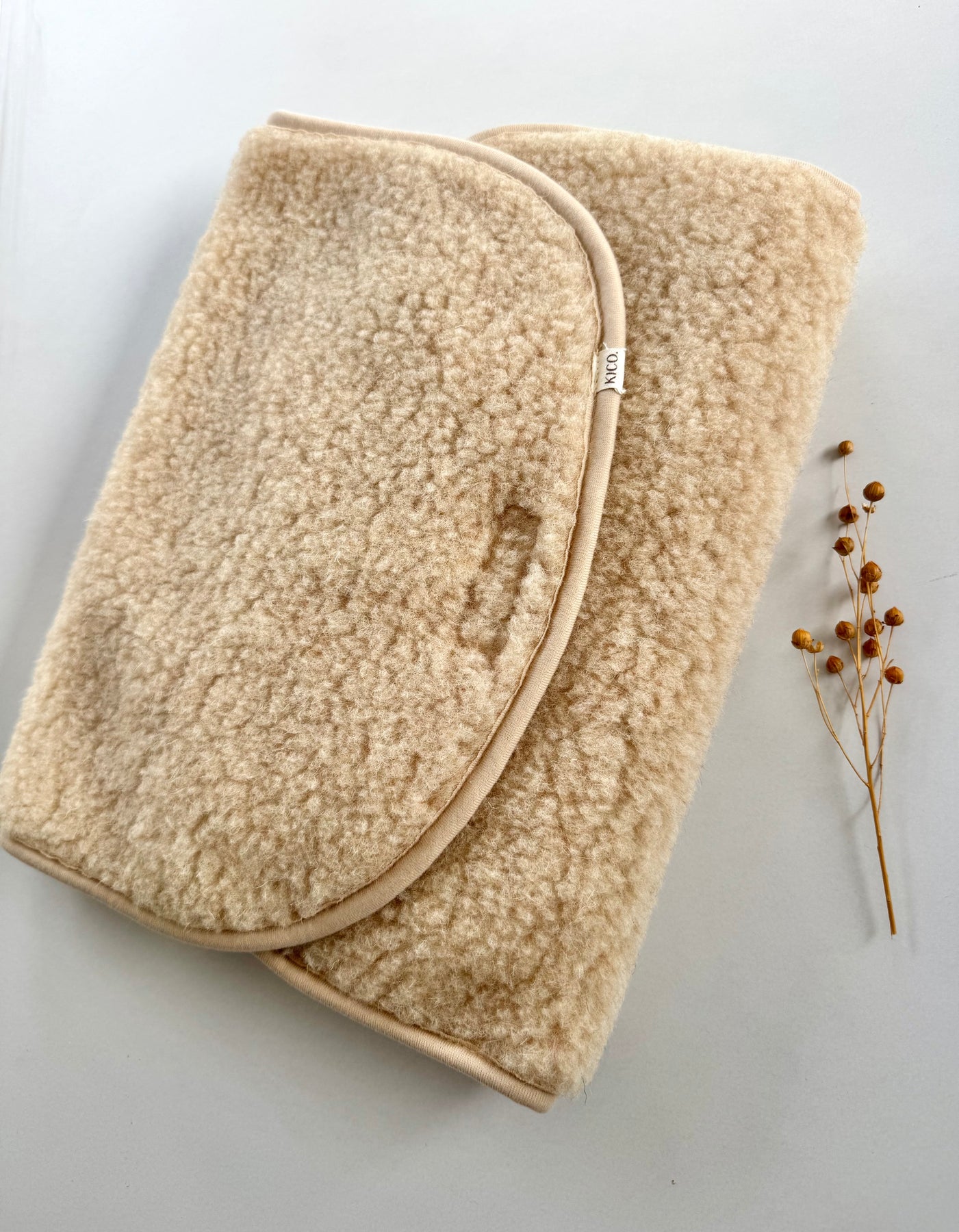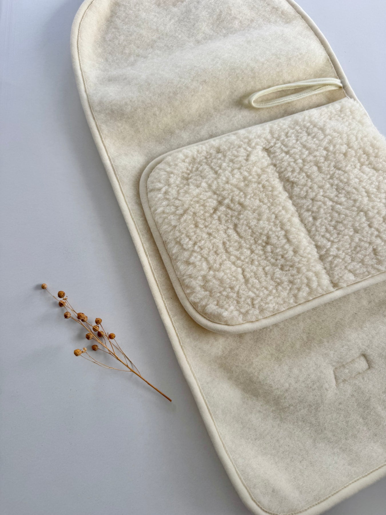 Met dit luxe merinowollen verschoonmatje maak je van ieder verschoningsmoment een fijn en comfortabel moment voor je kleintje. Het matje is extra dik, zacht en groter dan standaard, zodat je baby altijd warm en prettig ligt, zelfs op minder comfortabele plekken onderweg of bijv thuis op de tafel.